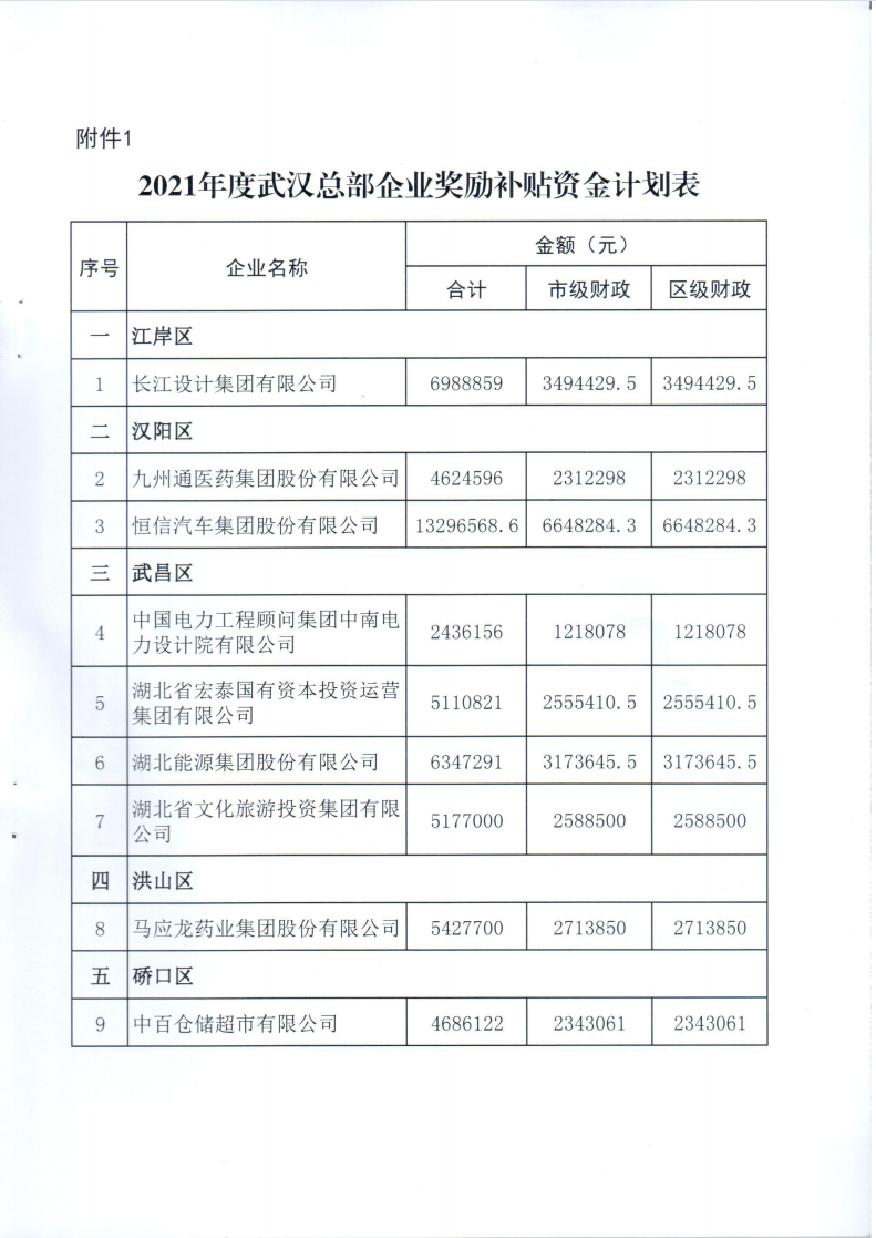 市發(fā)展改革委關于下達2021年度武漢總部企業(yè)獎勵補貼資金計劃的通知